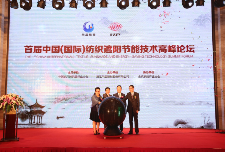 10月10日,首屆中國(國際)紡織遮陽節(jié)能技術(shù)高峰論壇暨“華辰股份”二十二年感恩慶典在杭州臨平舉行。本屆論壇主導(dǎo)單位為中國家用紡織品行業(yè)協(xié)會,由浙江華辰新材股份有限公司主辦,余杭家紡產(chǎn)業(yè)協(xié)會協(xié)辦。中國紡織工業(yè)聯(lián)合會副會長、中國家用紡織品行業(yè)協(xié)會會長楊兆華,余杭區(qū)副區(qū)長黃宏瞻,臺灣紡織業(yè)拓展會副董事長翁茂鐘,陶氏化學(xué)中國有限公司亞太區(qū)總監(jiān)魏東出席本